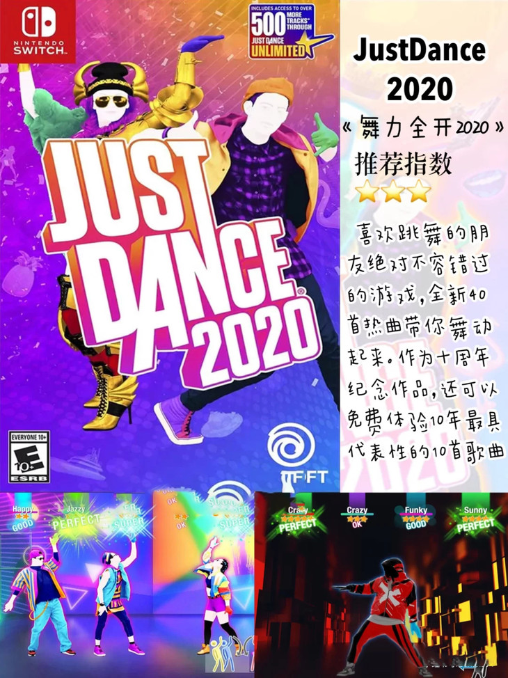 JustDance是育碧从2009年开发并发行的舞蹈游戏系列,2020是这个系列庆祝十周年的作品,因此在游戏中可以免费体验AllStars🤩模式👉🏻JustDance十年的10首代表曲目💃🏻本身游戏会含40首全新的歌曲,喜欢跳舞的小伙伴不容错过,但是要解锁全部500+首歌曲需要开通育碧会员,会先送一个月ulimited免费试用🆓
