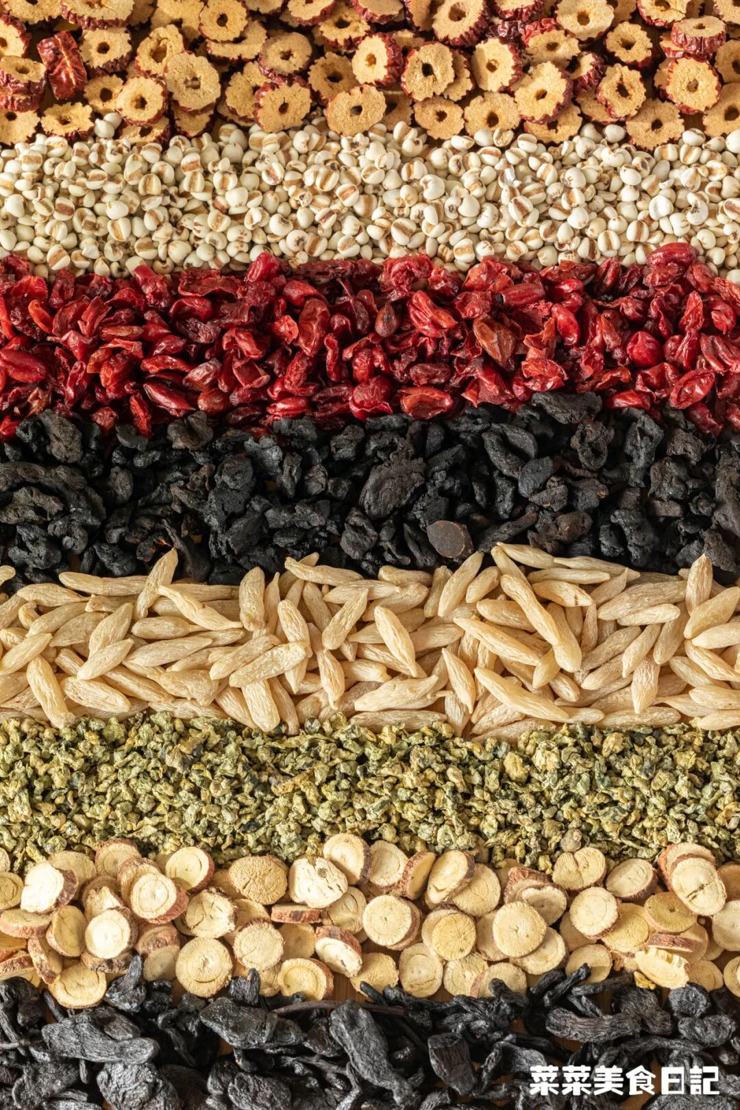 薏苡仁用贵州兴义产的,麦冬选的优质饱满的川麦冬,新疆精品大红枣切片,荷叶是湖南产的新鲜杀青去涩揉捻成型,带有淡淡的荷香,甜润好闻!