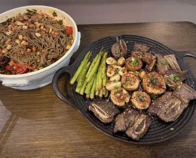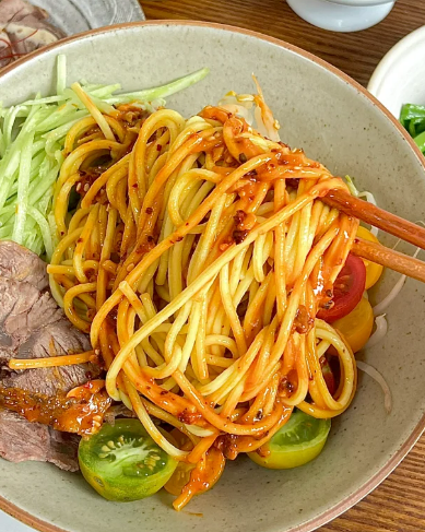 这个时候,那就需要一碗凉面搭配香煎牛仔骨,来为自己充实的一天补充能量了!