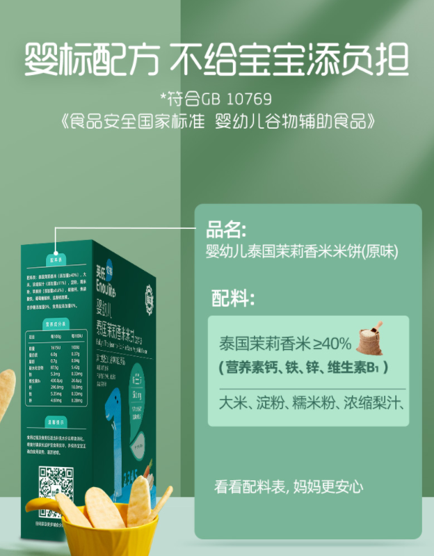 只保留食材本身的清甜美味,让米饼的香气更自然清新,守护宝宝本真味蕾,爱上食物自然味道。