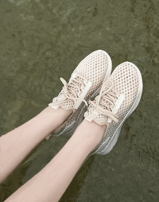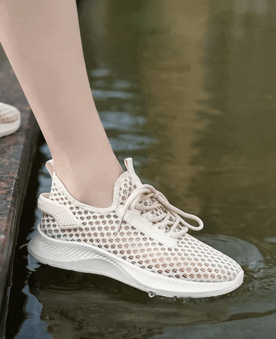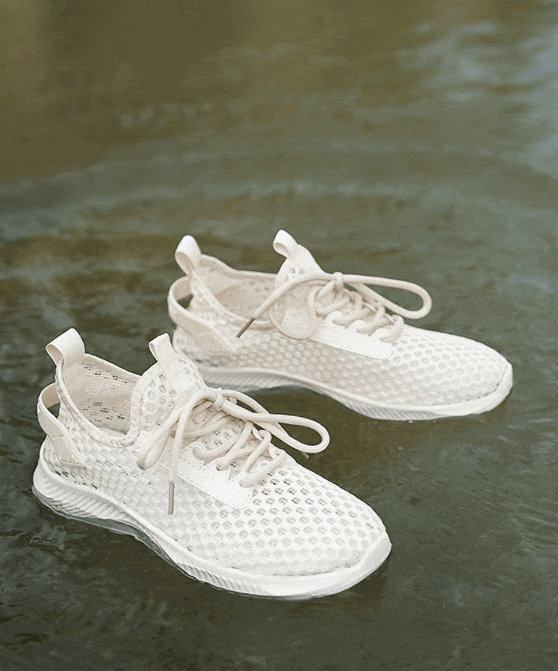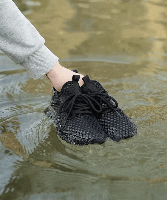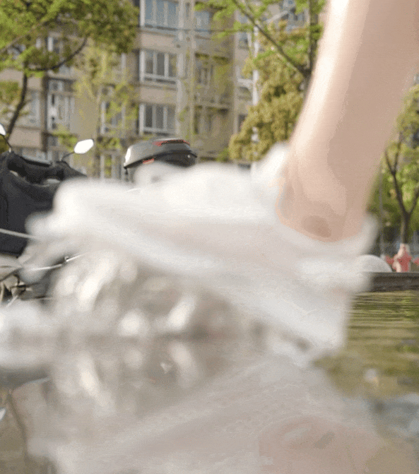 喝饱了水的鞋子轻到可以直接漂浮在水面上,行走于水中的你不会有丝毫沉重感,甚至可以来一段MJ的太空漫步。