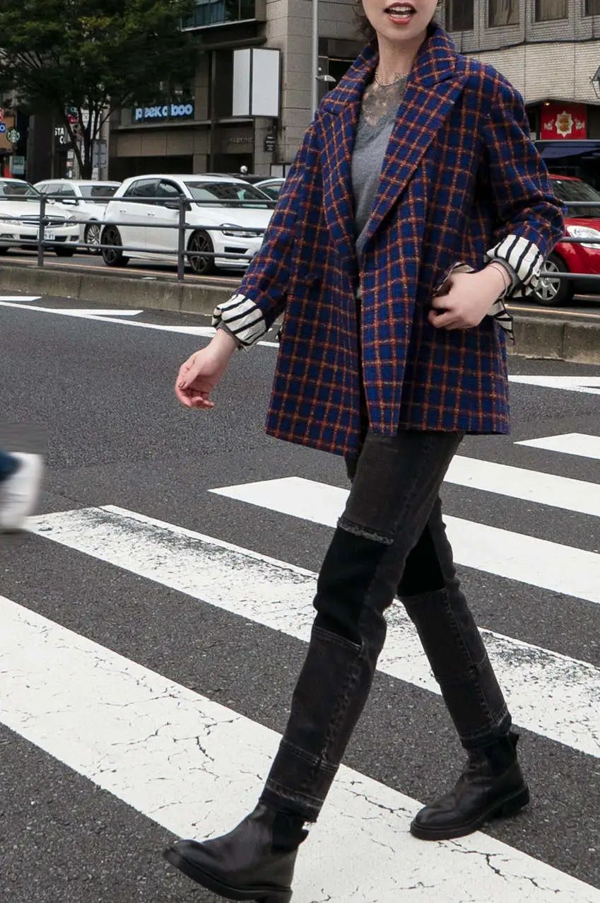 全身往往都是深色的服装为主