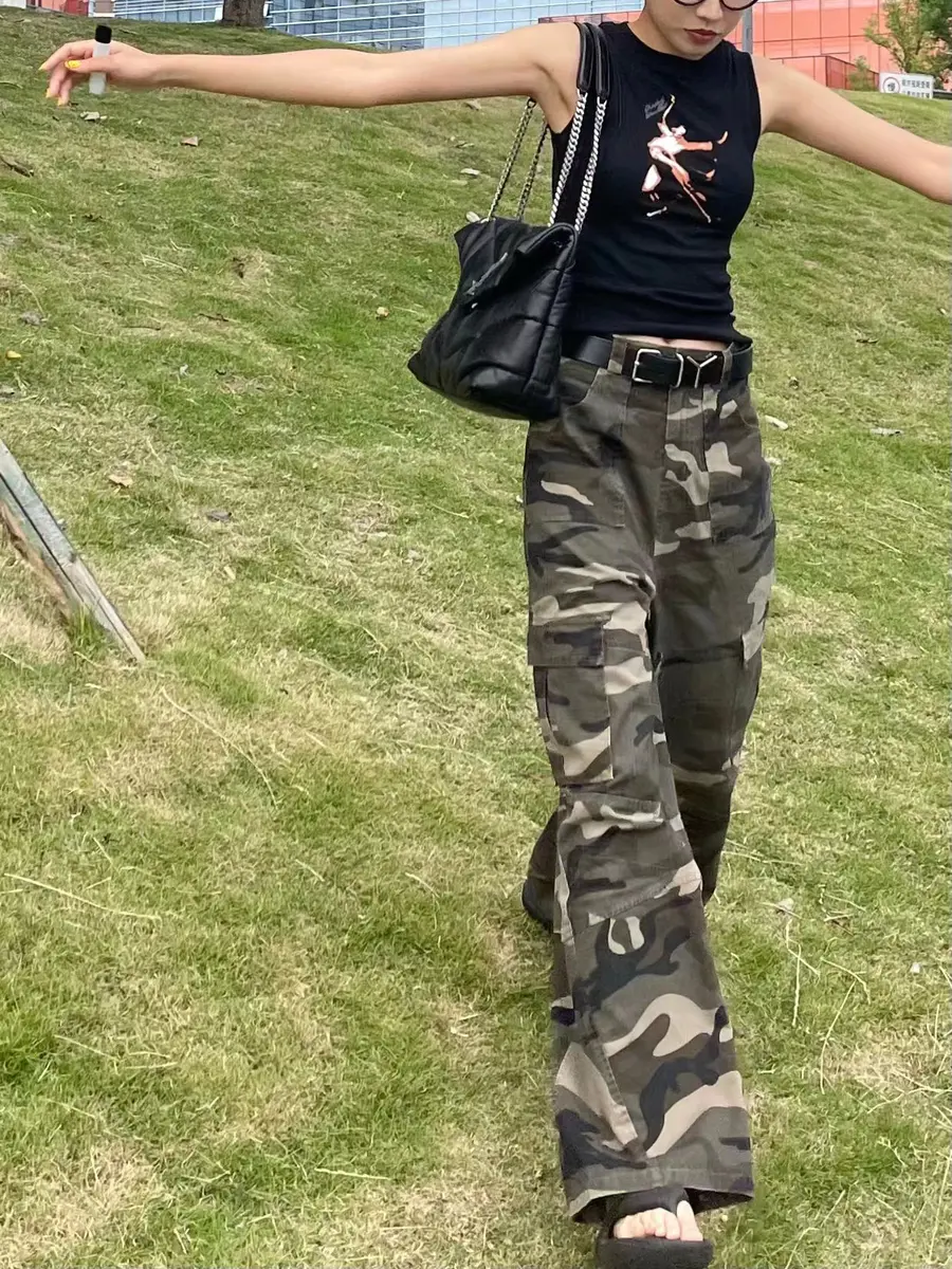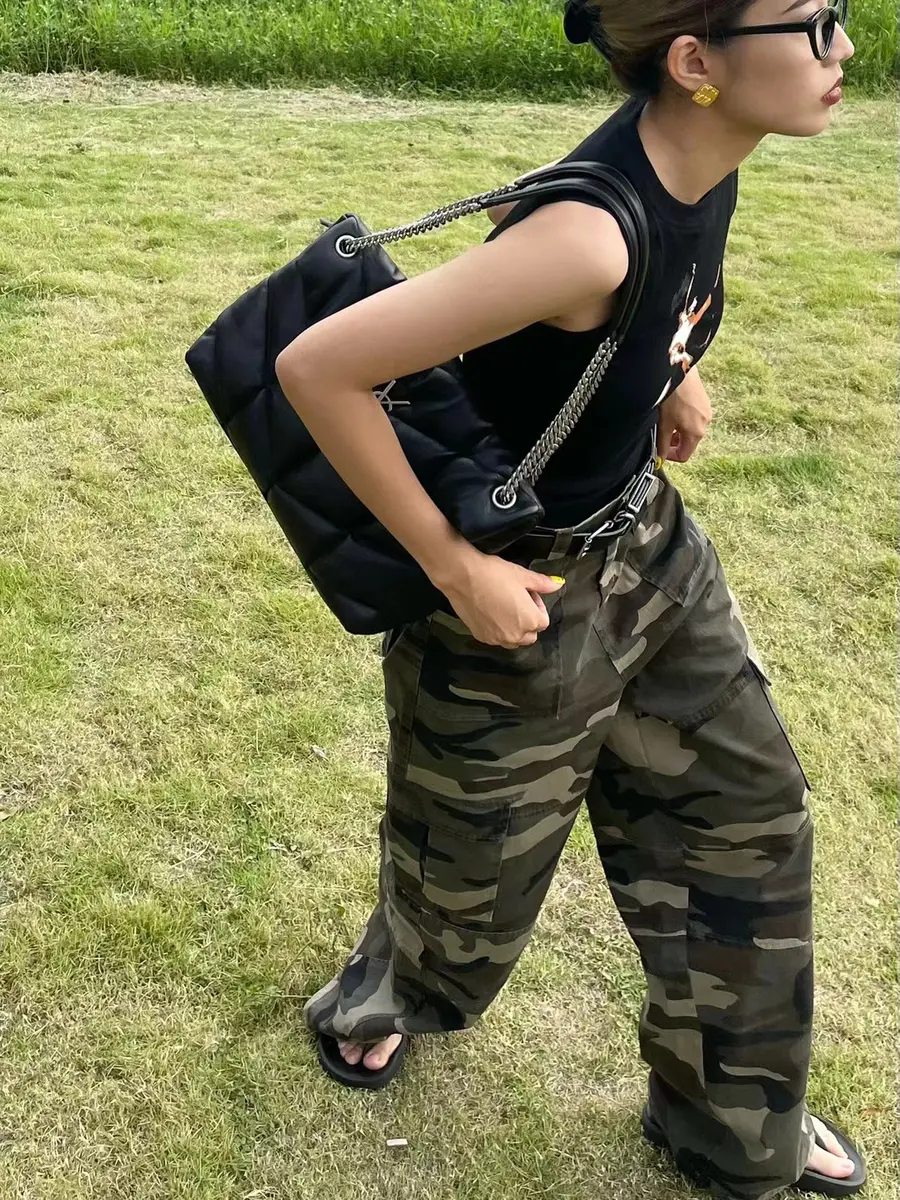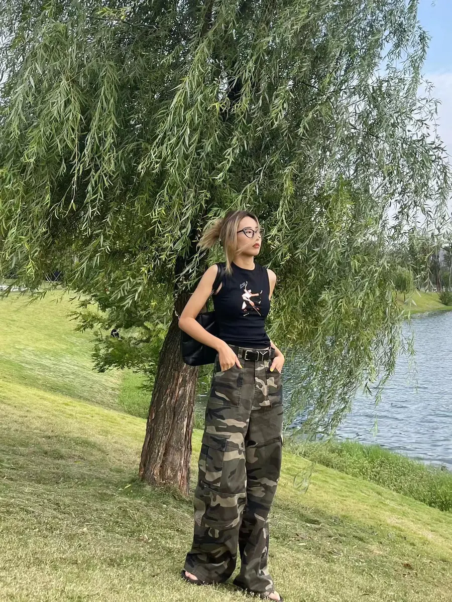 印花背心/宽松迷彩裤