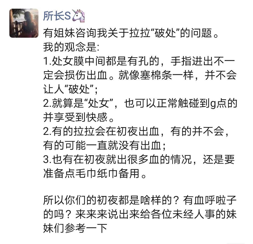 评论区还有一个姐妹问:到底什么算破处?