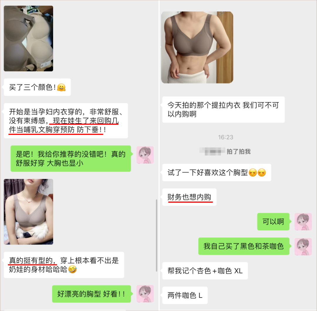 有粉丝孕期就在穿它,现在生了娃哺乳期还特意回购两件穿防下垂呢:
