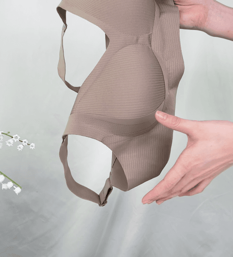 在背心式稳固的基础上,加入连耳仔提拉带,来加强塑形效果,从肩膀蔓延至下腋下都有向上的托抱力。