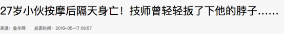 而且路边的按摩店千万不能随便去,网上就有不少因为按摩而造成颈椎错位,甚至④亡的案例。