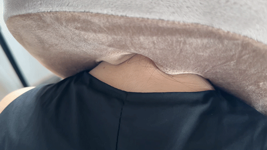 咱们这款按摩枕的设计恰好就像是给脖子量身定做的懒人沙发!