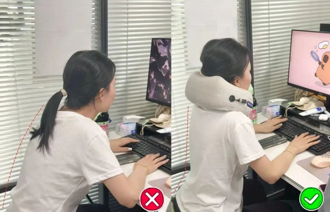 工作到下午三四点or低头玩手机久了,脖子僵硬得像根木棍,忍不住用手托住脑袋往后仰——“啊…舒服了!”