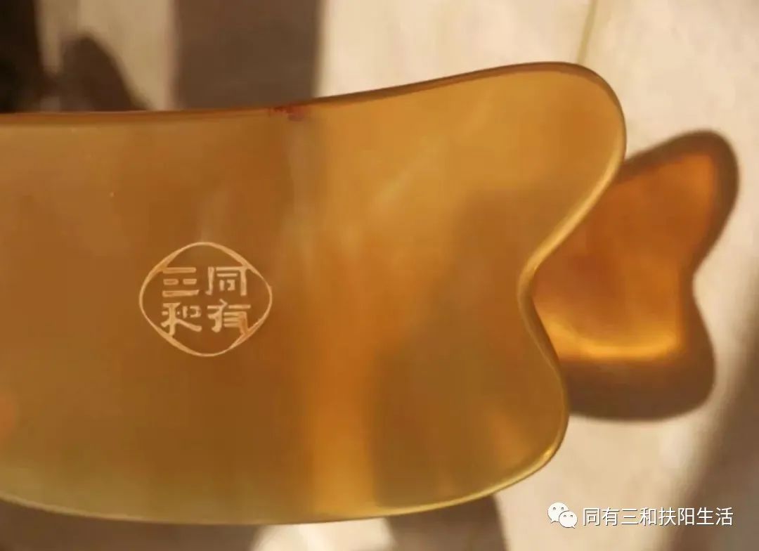 同有三和精选黄牛角、水牛角材质,定制大、小两款刮痧板,以及拨筋点穴棒,3款为一套,各有用处。