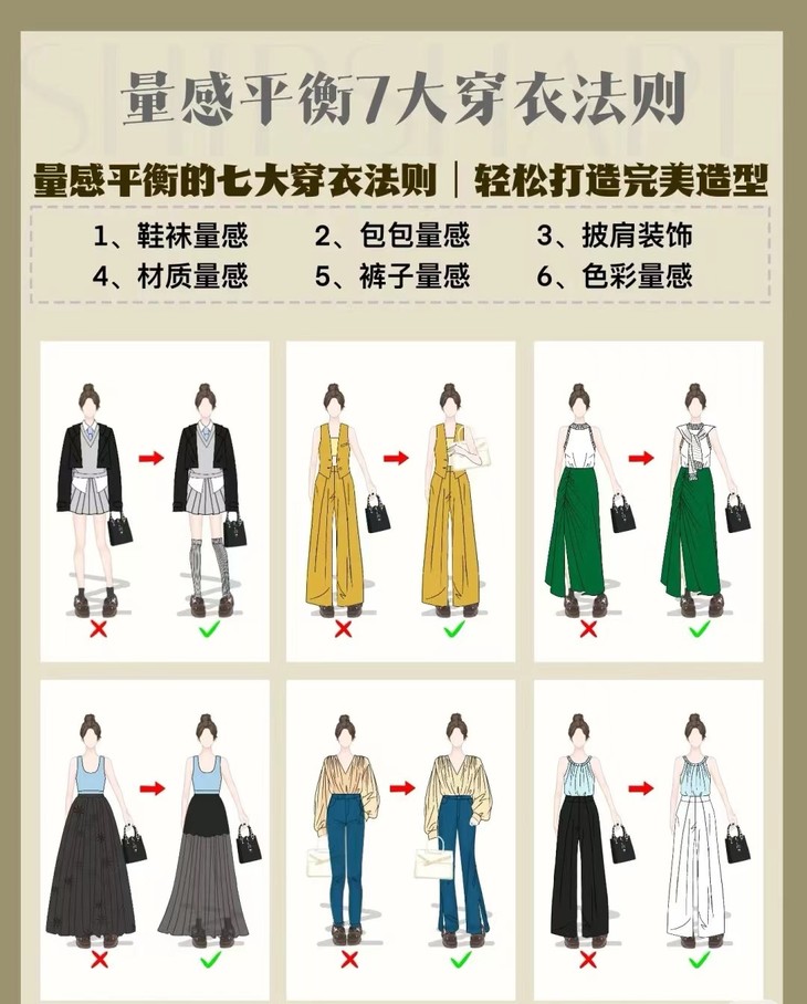 上半身量感小、下半身量感大,可以通过披散发型、增加围巾、披肩的方法,增加上半身的量感。