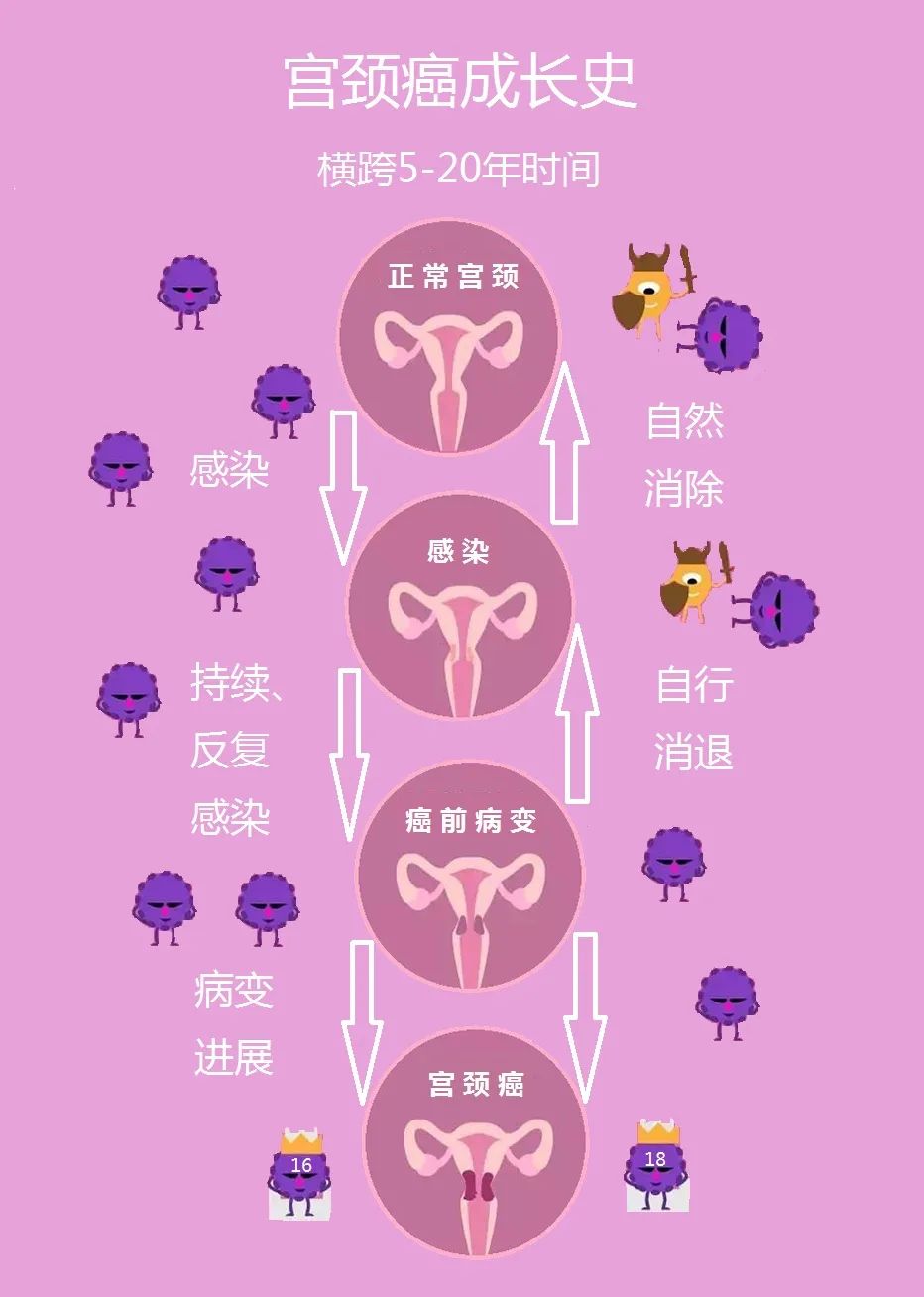 一旦感染,HPV病毒便可以通过炎症创面持续作用于细胞,时间长了自然就很容易发生癌变了!