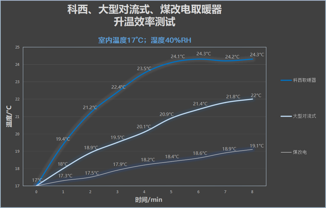 升温速度和峰值,要超出其他取暖器的50%之多,