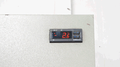 (冷库面积为15㎡)并且在屋子角落左右各设置了一枚温度计。