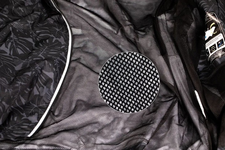 2、荷叶面料,遇水成珠,轻松抵御雨水油污,好清洁好打理;内里蜂网状设计,上身干爽不闷热。