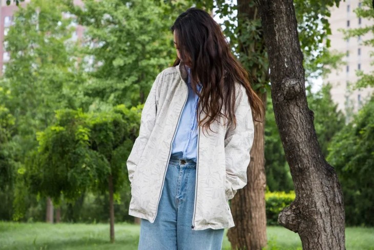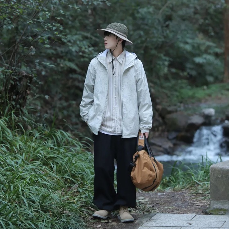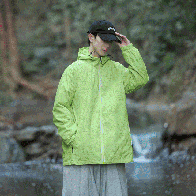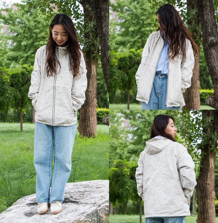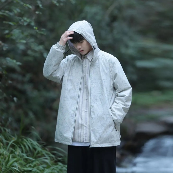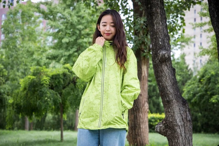 因为衣服外层用了科技荷叶面料,它还能轻松抵御雨水污渍。