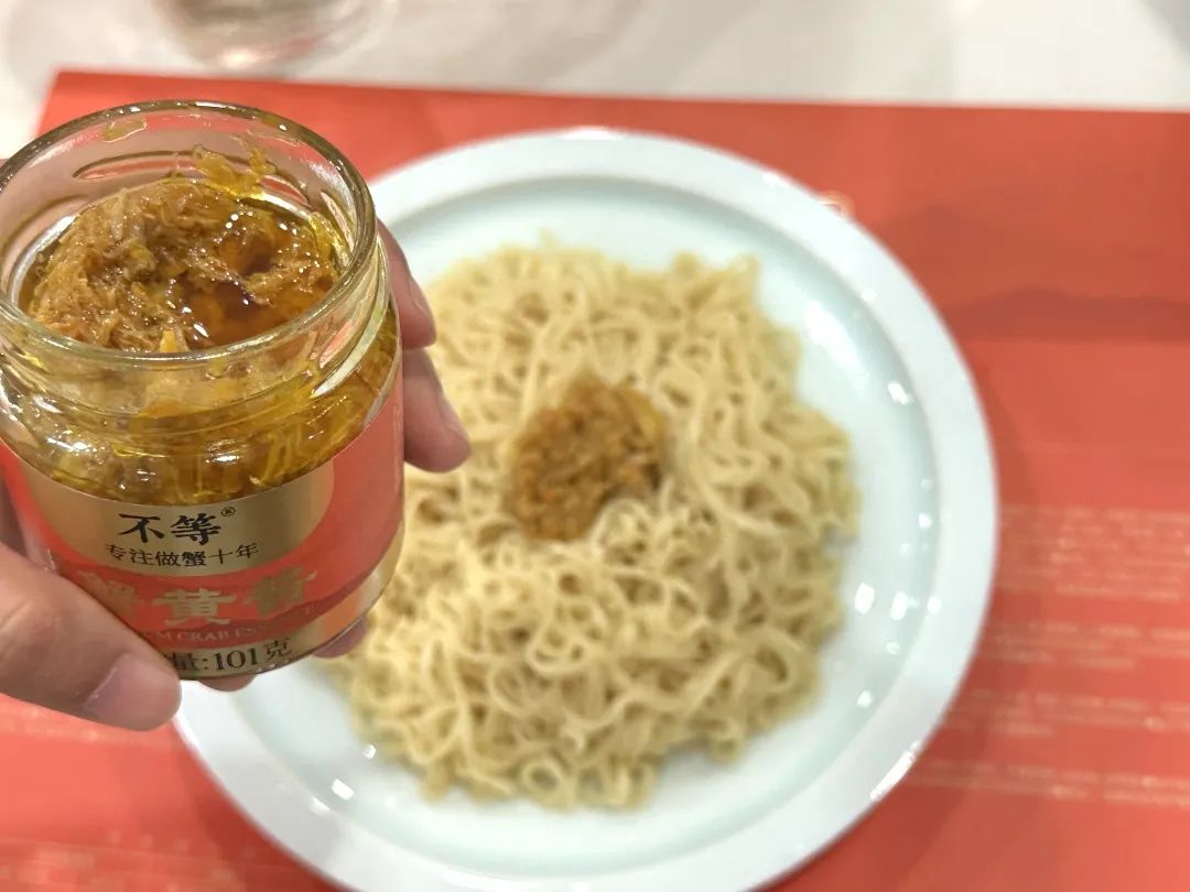 于是,当老翟抱着一箱潮汕蟹皇面出现在我眼前的时候,心里默念了三遍“凑合过吧”,然后拿出了我珍贵的蟹黄酱。俗话说的好,千难万难难不倒吃蟹人,什么面不是面呢。