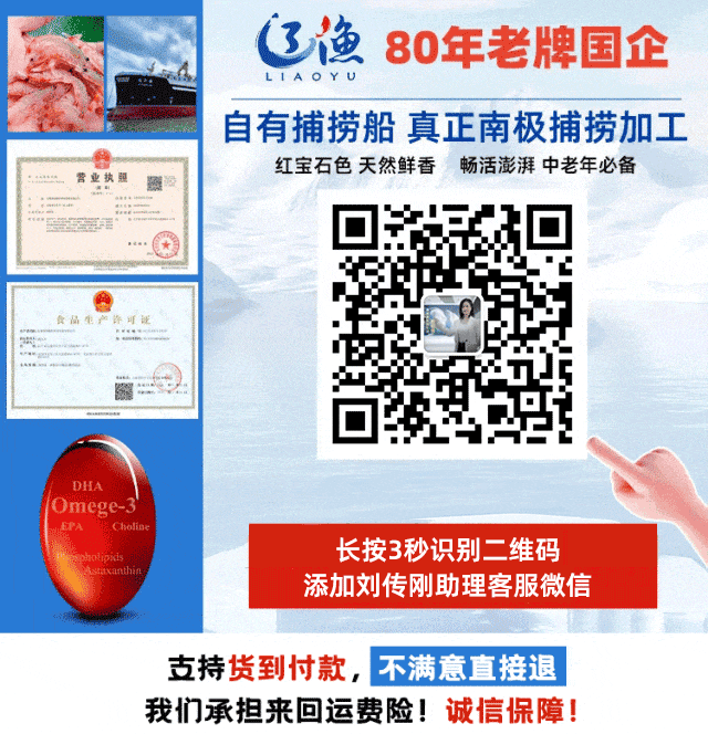 刘传刚:没错,所以选择南极磷虾,选对品牌是关键!咱们辽渔作为一家国企,有自己的捕捞船,有自己的加工厂,是国内为数不多的磷虾油“源头企业”,获得了多个国际认证,出口到多个国家,闭着眼也选不错。