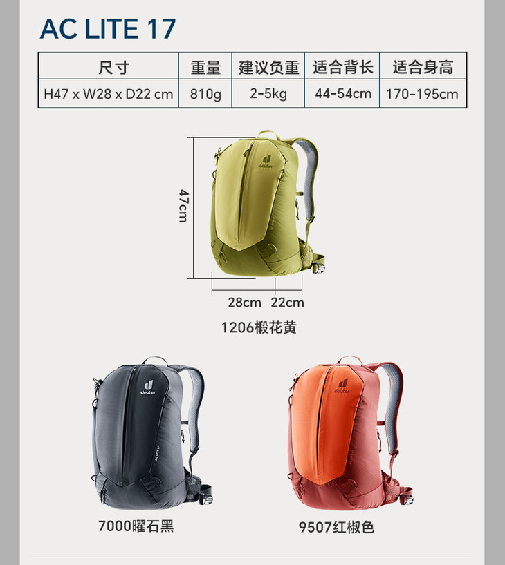 选择了户外亮色,绿咖喱配色,17L版本,自重840克 不愧是专业户外背包品牌!