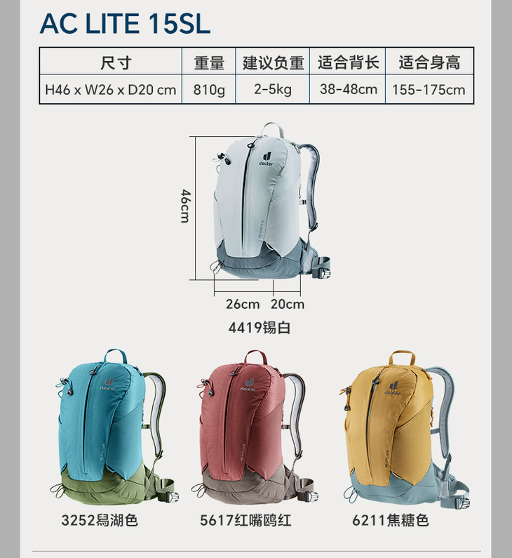 配有水袋仓、登山杖固定环,轻量透气满足户外多样出行需求。