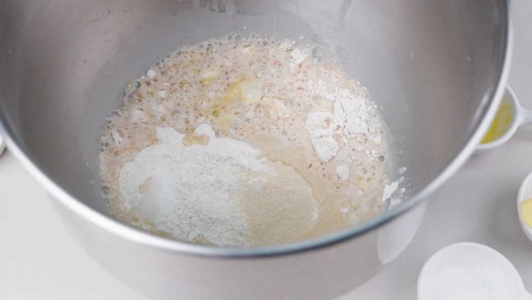 放入容器中盖上保鲜膜,进行一次发酵,发酵一倍大