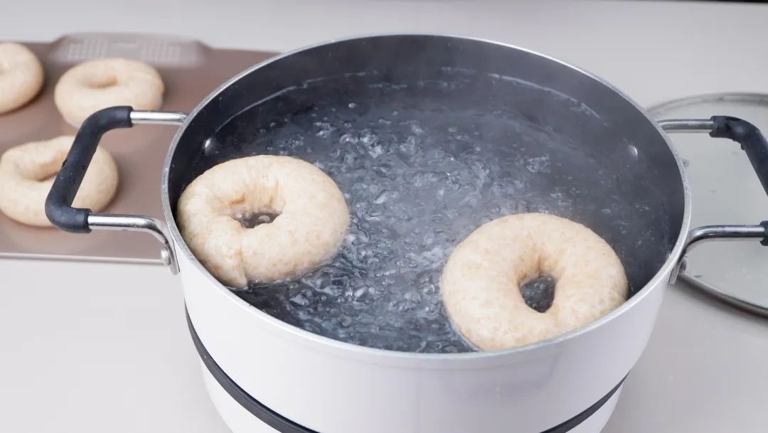 发酵一倍大,取出采用沸水两面分别煮30秒,放入烤箱进行烤焙,上火180,下火200度,烘焙20分钟即可