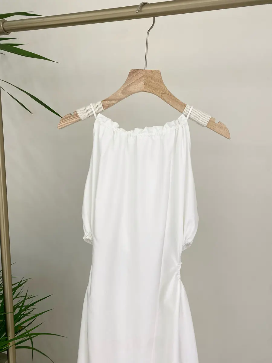 优雅抽褶圆领打造挂脖感,腰部呼应圆弧形褶皱,让小白裙,上身不会过于正式,且让胸口位置自然立体起来~