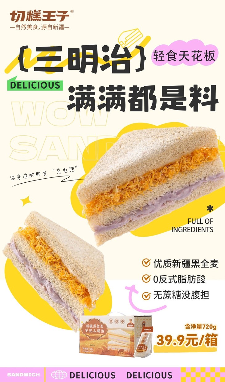 ——切糕王子新疆黑全麦芋泥三明治🥪