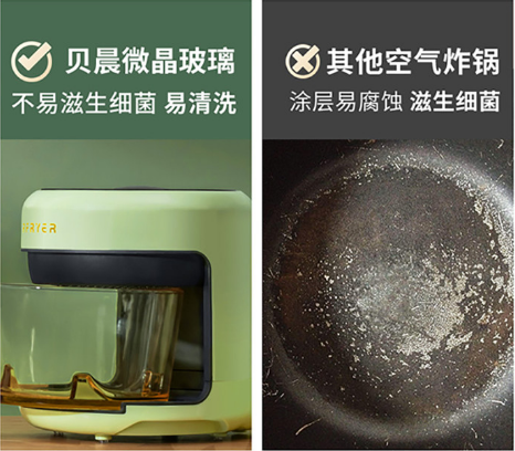 与普通空气炸锅不同,贝晨大胆采用了透明微晶玻璃。