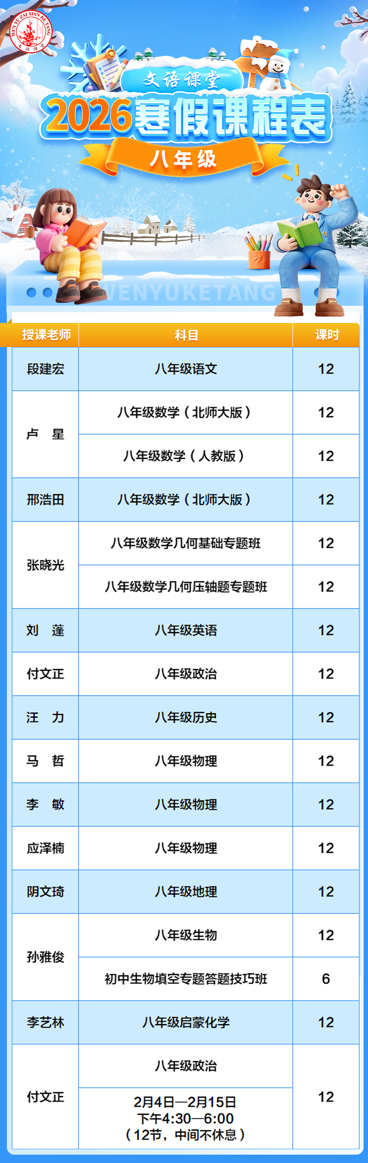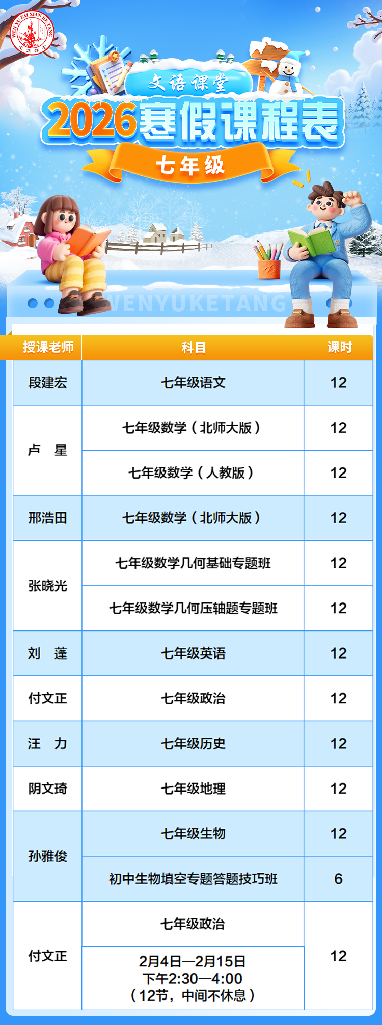 文语课堂2026寒假课程说明
