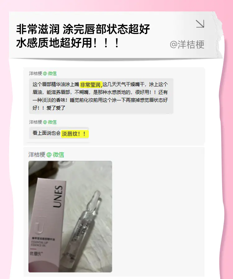 用到的核心成分是99.7%的高奢护唇精华以及高渗透配方 水润修护 轻盈不粘腻 并且一定程度上淡化唇纹💯