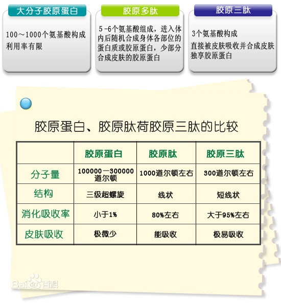 而皮肤真正需要并且能很好被人体吸收的是一种由3个氨基酸分子组成的胶原蛋白——胶原三肽。