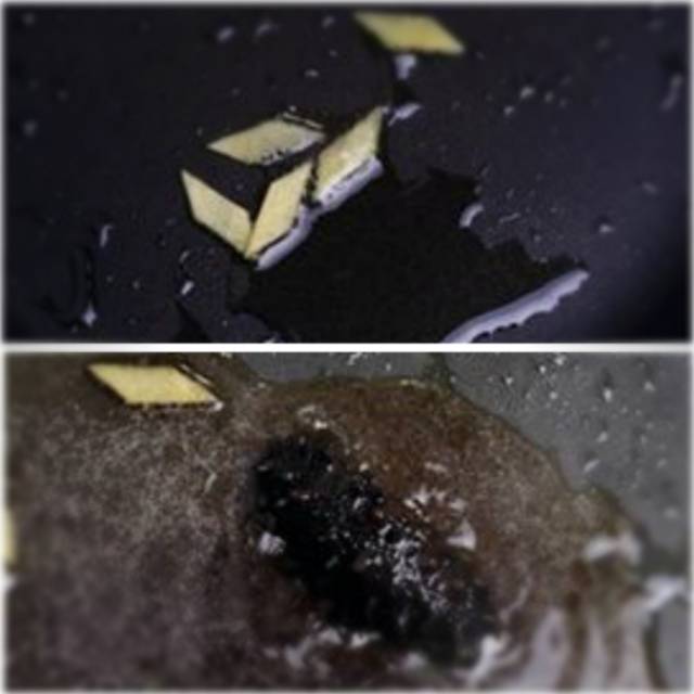 3、葱油留在锅中,加入一片姜,海参请回锅翻炒一下,如果选配冬瓜最后放入,时间相隔10秒左右;