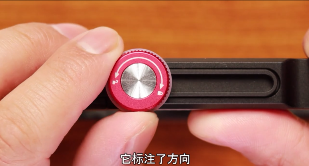 细节2:旋钮上标注了方向,可以清楚地知道哪边是锁紧。