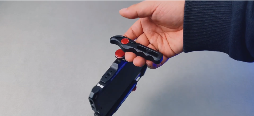 这款灵珑兔笼只要拧松手柄的旋钮,就可以拆下来安装到长边的两侧,轻松完成竖拍模式的转换。