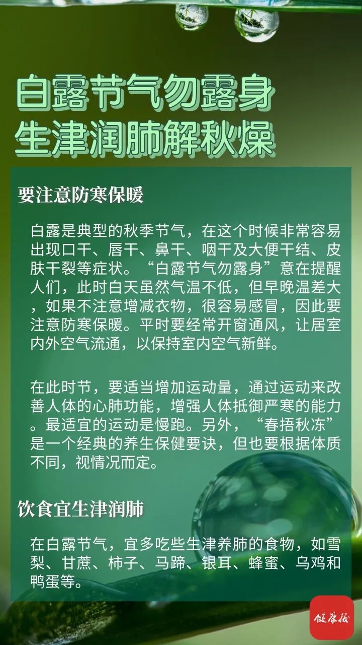 今日白露 | 凉风至,白露降,生津润肺防寒凉