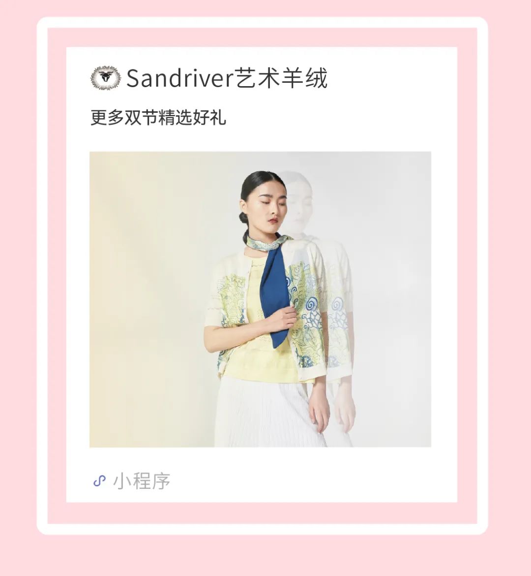 历年在巴黎时装周亮相,享誉世界的艺术羊绒品牌[Sandriver 沙涓]由羊绒布道者郭秀玲女士创立。阿拉善自有牧场纯种羔羊绒,日本国宝设计师小筱顺子,上海自有基地精工细作。承载羊绒情怀,坚持匠人品质。