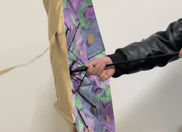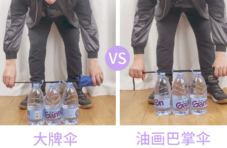 那我们一起来试试看,首先测试它加厚加粗的黑钢伞骨,好家伙,在3桶水的摧残下小伞秒弯,骑士伞还笔直笔直的,像兵哥哥一样给力!