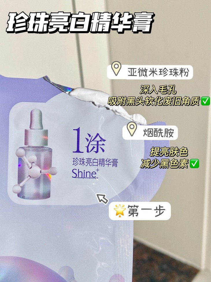 2️⃣做好日常保湿后,先涂珍珠膏,再敷面膜,
