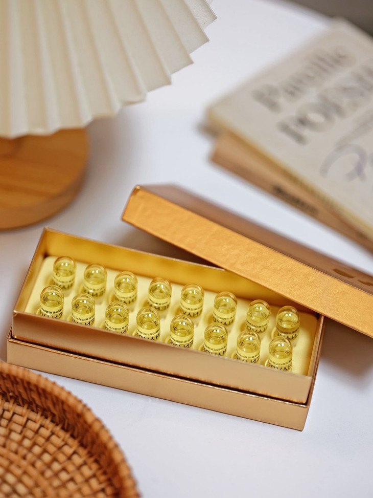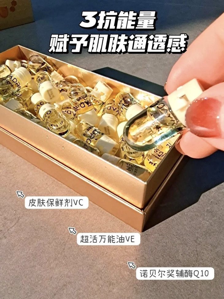 先说说它的独特设计吧,这款精华油形似胶囊,每瓶1.5ml,刚好够一天的用量。不仅携带方便,还能保证每次使用的新鲜度和活性。更贴心的是,它的盖子可以重复开关,用不完也不用担心浪费。仪式感满满,一打开就感觉自己在做一场高端护肤SPA!
