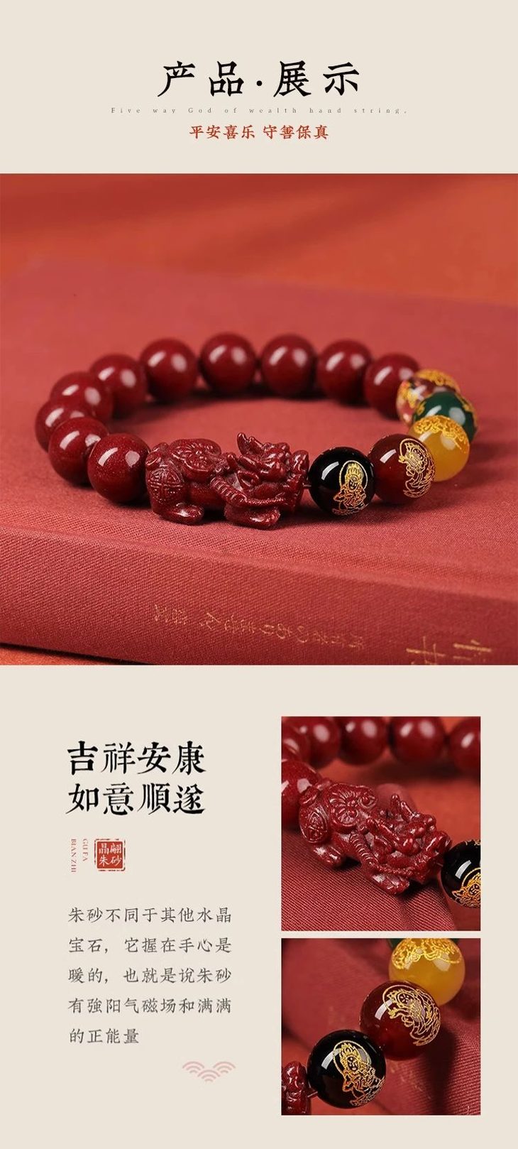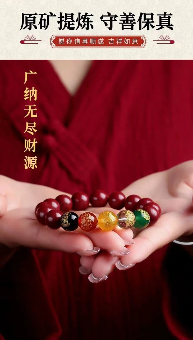 朱砂是一种祥瑞之物,无论在何种场合佩戴,更是祈求平安和幸福的象征。