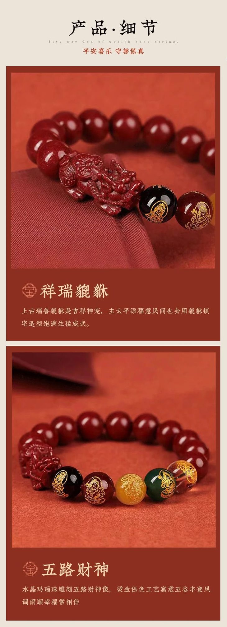 这次我们应大伙所求,本着期愿来年暴富发发发,带来了这12款——【新年红五路财*神朱砂玛瑙手串】。