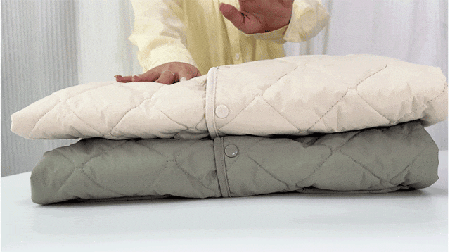 这样按压衣服,衣服还会慢慢的膨起来,穿在身上的时候仿佛跌入了一个温暖又宽厚的怀抱~