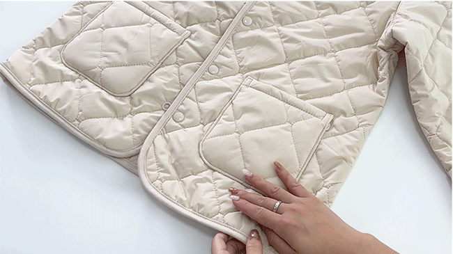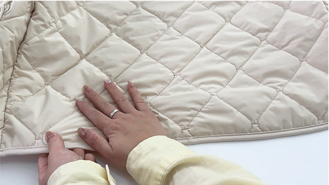 还有四重结构锁羊毛胆布+细密的菱格型绗缝工艺让内里填充的羊毛压根无处可“逃”。