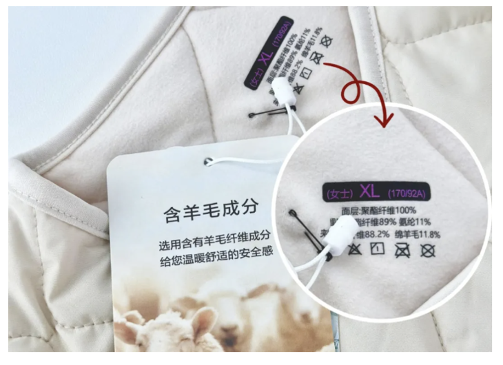 明晃晃的写着羊毛成分: