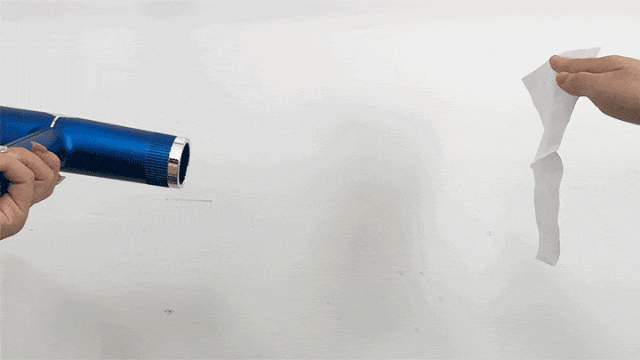 抗风一级棒,隔着这件羊毛外套把风扇调到蕞大档位,羊毛外套一挡,背后的纸巾立马“风平浪静”。