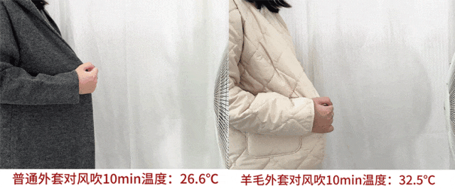 也替大家试过了:搬出来了风力超猛的电风扇狂吹胸前,普通外套早就漏风到扛不住了,它还能持续暖和。