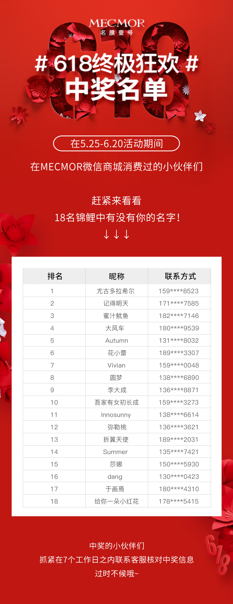 618年中狂欢锦鲤中奖名单,快来看看有没有你!!