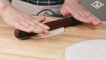 轻轻按压面团,将面团均匀地擀成圆形,完成后,将每张面坯中间用油纸隔开,可冷冻保存(想省事的可以一次性多做点,这样一周的早餐都有了)