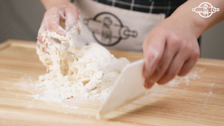 中筋粉250g、盐2g,加温水(约50℃-60℃)150ml搅拌成絮状,然后揉成光滑的面团